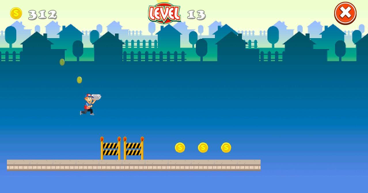 Pizza Delivery Run將您當作比薩餅送貨員,在這個看似易於玩的且令人上癮的平台遊戲中。